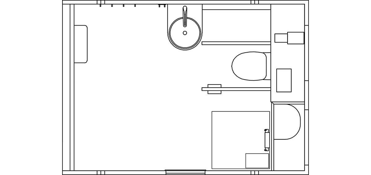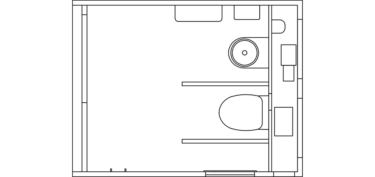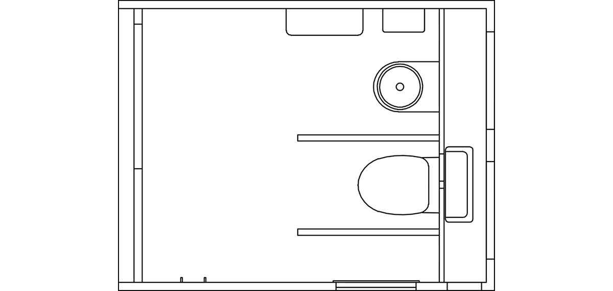 EventCubes are built strictly from inorganic materials to protect against damp, mold and degradation over time. The inside consists of fiberglass with a hidden pipe feed and wall-mounted fittings, giving the user a feeling of cleanliness and comfort. The smooth surfaces and obstacle-free floor can be cleaned quickly and efficiently.