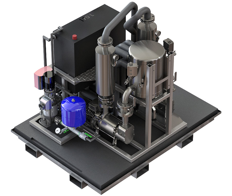 The pump station features the unique Vacuumarator™ pump from Jets™. It creates vacuum, macerates sewage and discharges in one single-pass operation. The vacuumarator™ pump is the most compact and reliable vacuum generator available for sanitary systems. It is highly efficient in transporting any combination of black and grey water under vacuum. Learn more at Jetsgroup.com.